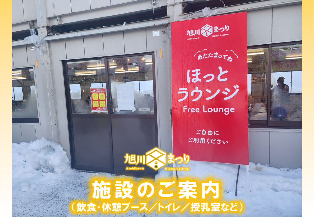 ・「旭川冬まつり会場」は、交代制でご利用いただくスペースとなりますので、ご利用されている方がいる(施錠されている)場合は使用が終わるまでお待ちください。