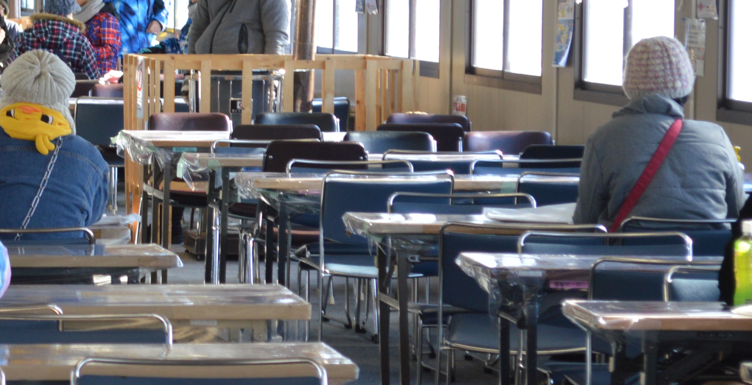 ・飲食スペースは多く用意しておりますが、時間帯により混雑が予想されますので、混雑時は譲りあってご利用いただきますよう、お願いいたします。