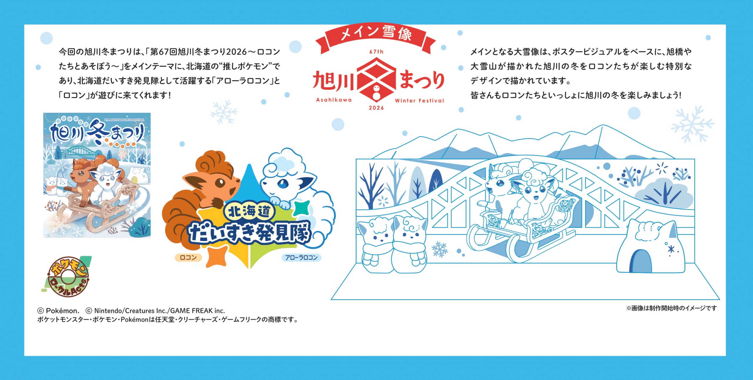 今回の旭川冬まつりは、「第67回旭川冬まつり2026~ロコンたちとあそぼう~」をメインテー