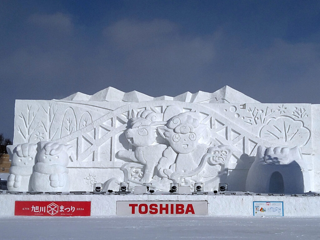 メインとなる大雪像は、ポスタービジュアルをベースに、旭川のシンボル「旭橋」や大雪山・ナナカ